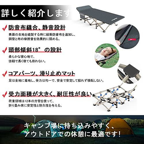 【折り畳んだり携帯できる】-折りたたみ式ベッドは専用袋に入れて、キャンプ場に持ち込みやすく、アウトドアでの休憩に最適です