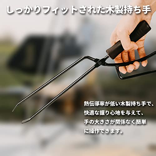 【掴みやすい設計】薪ばさみが人間工学設計により軽量で掴みやすい構造と設計しており、先端部が平に広くなっているので、豆炭から形がバラバラの木炭や重い薪までしっかり掴めます。