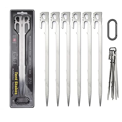 FFOGG ペグ テントペグ 28cm キャンプ設営用具 アウトドア 鍛造ペグ ステンレス鋼420 一体化 U字型 6本セット アウトドア 登山 硬い土 砂地 草地用 ステーク ペグセット