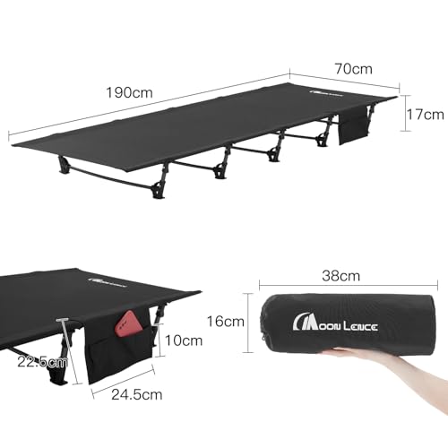 MOON LENCE キャンプ コット アウトドアベッド 折りたたみ キャンプベッド 簡易 コンパクト 超軽量 耐荷重160kg 枕*収納ケース*キャリーバッグ付き 防災 防水 通気性 ブラック