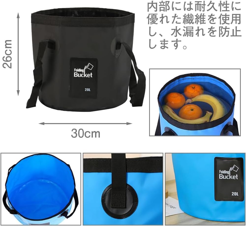【 折りたたみ バケツ】-ダブル生地と純手製の裁縫のため水圧に負けず丈夫で水漏れしません。非常に軽く、簡単に折りたたみ可能で、かなりの重さを支え、同時に自立式でもあります!使わない時は折りたたんでコンパクトに収納ができます。
