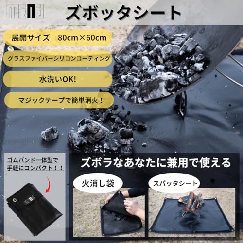 mind ズボッタシート 焚き火シート 〈2WAY〉 (火消し袋 + スパッタシート)アッシュバッグ チクチクしない シリコン BBQシート 不燃 防炎 耐熱