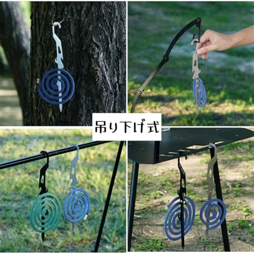 渦巻き型の蚊取り線香に対応し、効果的に蚊を寄せ付けません。屋外での使用に特化した実用的なデザインで、釣り、登山、農作業、キャンプ、庭、夏のアウトドアシーズンに大活躍します。