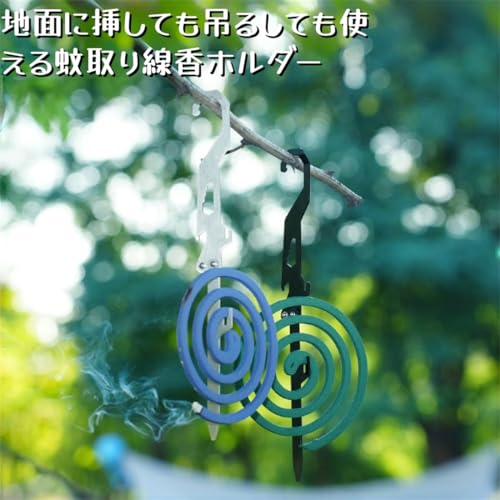 SITEDAN 蚊取り線香ホルダー キャンプ用 蚊取り線香立てスタンド 渦巻香 線香立て ペグ型 アウトドア 防蚊 屋外 折り畳み式 ステンレス お釣り 吊り下げ (黒)