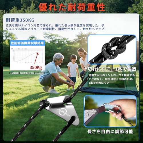 【軽量で多用途】テントロープは軽量でコンパクトに収納でき、持ち運びが楽です、キャンプ、登山、ハイキング、狩猟など、キャンプ以外にも、庭のシェード固定や災害時の応急対応、荷物の固定など、多用途に使用可能。アウトドアはもちろん、日常生活や緊急時にも役立ちます。