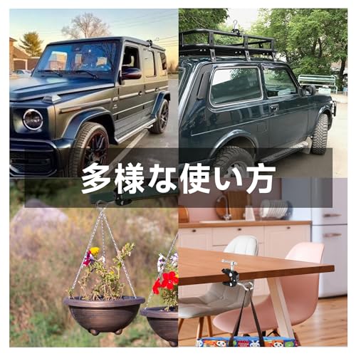 【丈夫&耐久】ノブグリップはステンレス製、あごはのプラスチック製で、軽量で持ち運びやすいテントクリップです。グリップの開口部は最大50mm、多様な車種の溝に対応することができる。車に当たる部分には保護用のゴムキャップあるので車を傷めません。テントポールは長く置くと錆びて老化しやすく、これはもっと長く置くことができます。テントポールが遊休しているときはあまり役に立たないので、これは子供のかばんを机の上にかけることができます。