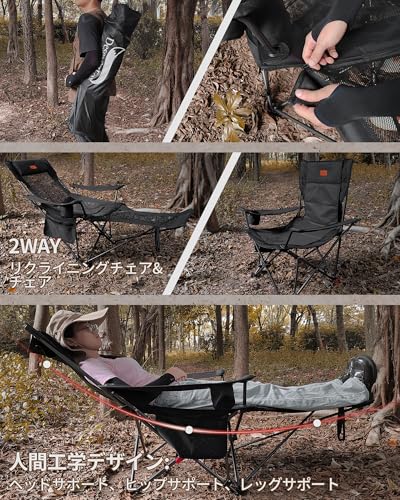 ✅【快適な人間工学に基づいた曲線 】➊ヘッドサポート、➋ヒップサポート、➌レッグサポート。3つの重要なサポートポイントが頭、首、ウエストと 脚をしっかりと支え、脚を伸ばすことができます。広い座面は家族全員に適しています。アウトドア チェア リクライニング 人間工学に基づいて設計されており、快適で体がリラックスさせる姿勢にストレッチできるように調整できます,映画を観たり本を読んだり、仕事場での休憩や仮眠にもフラットにして使えます!◆ 超柔らかいの肘置きクッション、快適性を大幅に向上させることができます。 コンパクトで持ち運び便利、 キャンプやバーベキューなどアウトドアにも最適です。