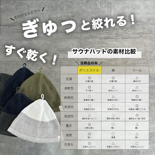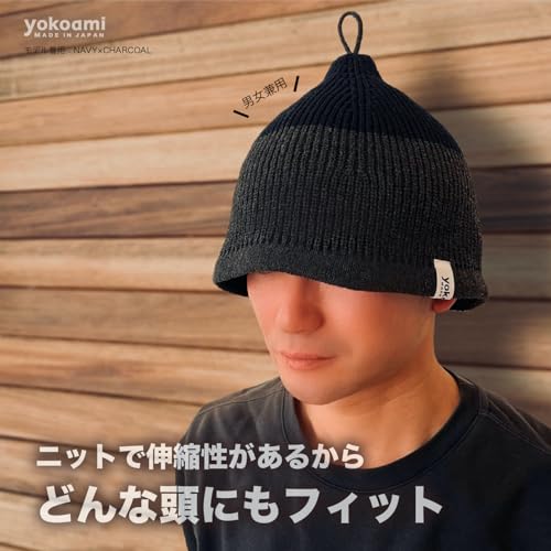 [yokoami\MADE IN JAPAN] サウナハット 日本製 ニット 洗える 速乾 レディース メンズ ポリエステル (ネイビー)