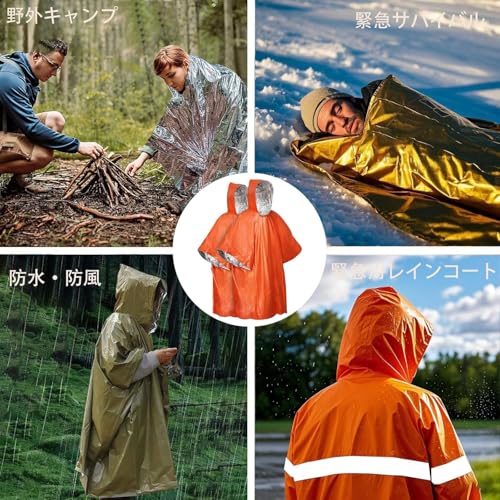 【多機能アプリケーション】防風雨コートとして、反対側緊急信号反射フィルムとして。または野外サバイバル装備として、どのようなアウトドア活動や突発事態にも対応する多機能デザインです