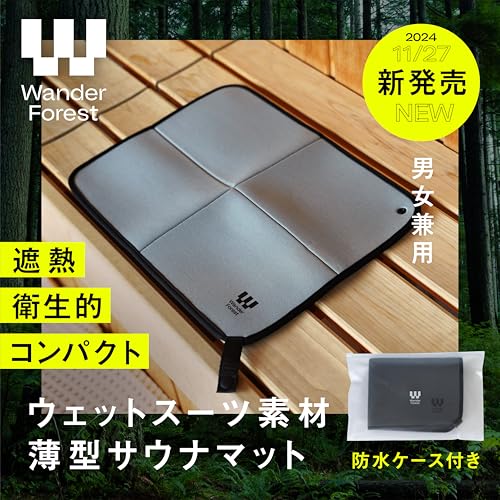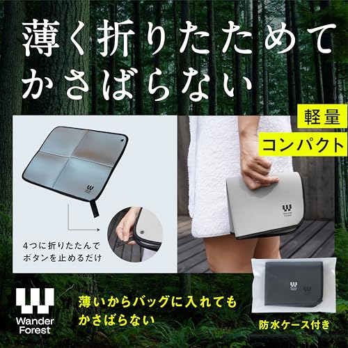 [Wander Forest] サウナマット 【ウェットスーツ素材】 超薄型 折りたたみ サウナグッズ コンパクト メンズ レディース 洗濯可 サウナハット サウナ プールマット お尻マット 1個 軽量 防水 収納袋付き (ライトグレー)
