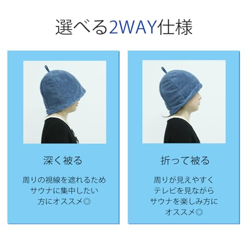【サイズ】フリーサイズで男女兼用タイプサウナハット。広げた時の横幅:約37cm、頂点からフチまでの長さ(深さ) :約28cm
