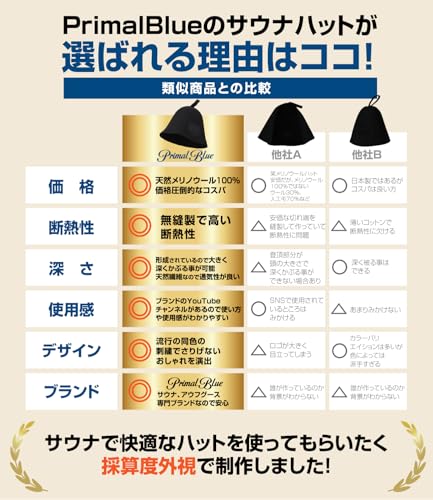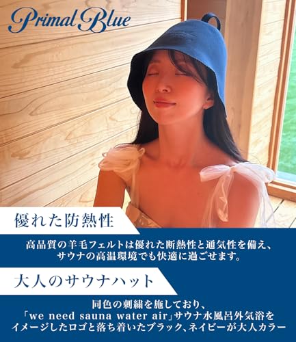 [Primal Blue] サウナハット サウナ帽子 羊毛 ウール メンズ レディース 丸洗い可 メリノウール 無縫製 洗濯試験合格 ハンドメイド (ブラック)