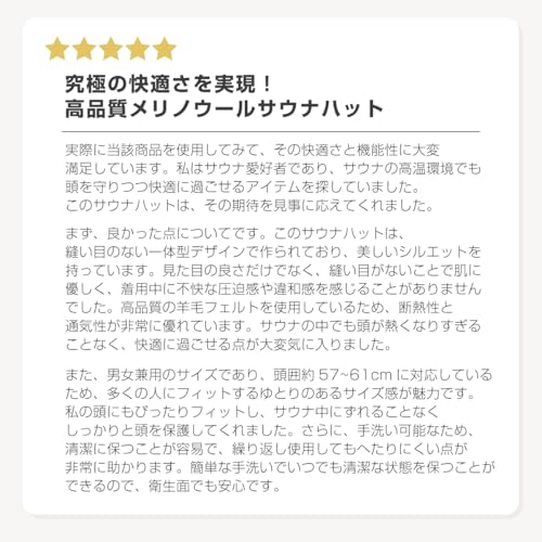 天然素材で環境に優しい: 羊毛は天然素材なので、環境に優しく、サウナの後もさわやかな肌触りが続きます。