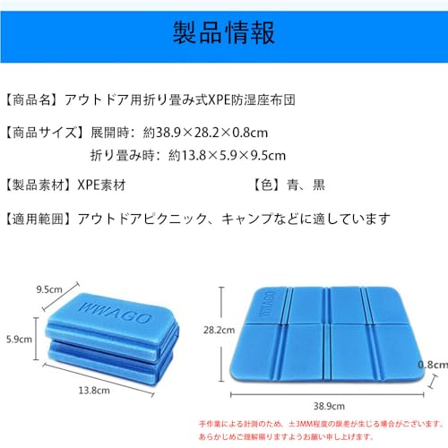 3:【高品質】私たちの座布団は、防水、断熱、緩衝機能を持つ高品質なXPE素材を使用して作られており。地面からの湿気、熱量などのを防ぎます。濡れた場所や熱い場所、冷たい場所でも快適に座ることができます。
