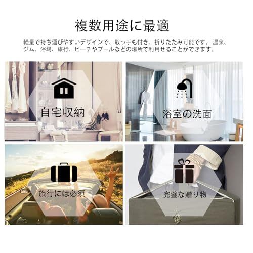 【幅広い用途】軽量で持ち運びやすいデザインで、取っ手も付き、折りたたみ可能です。 温泉、ジム、浴場、旅行、ビーチやプールなどの場所で利用せることができます。