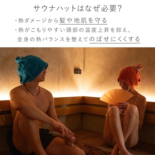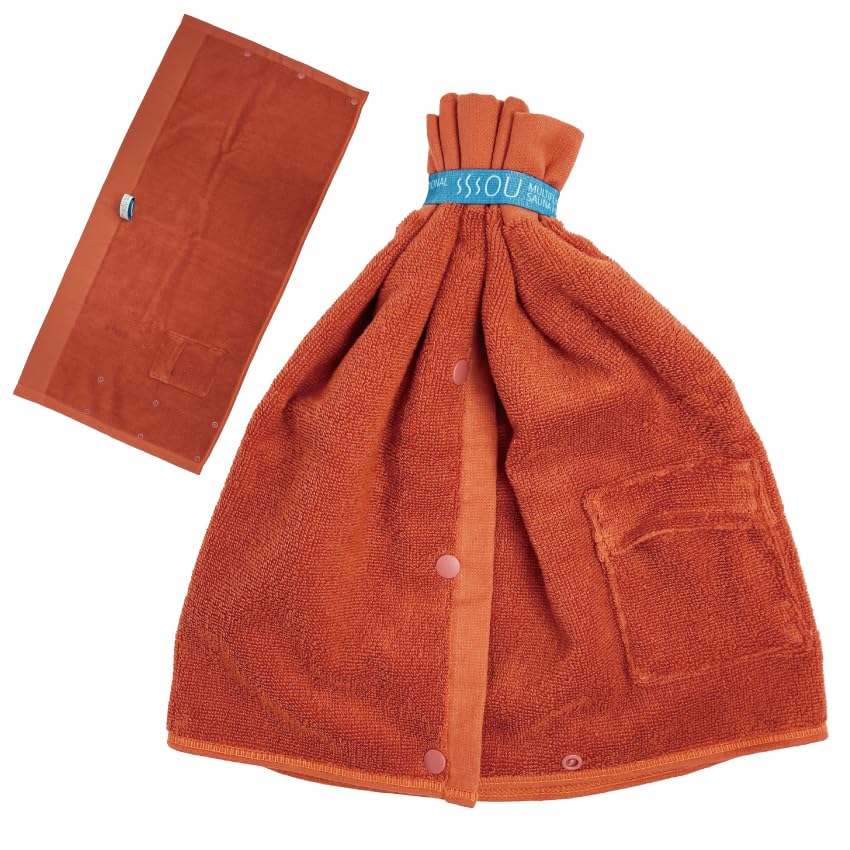 SOU by RAKUSE (ソウバイラクセ) サウナハット (洗える / 2段階のサイズ調整 / ポケット付き) 多機能 サウナグッズ (タオル / 綿100%) メンズ レディース 大きめ サウナタオル (オレンジ)