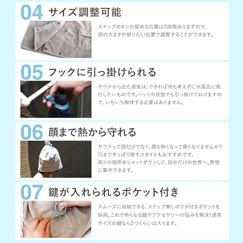 【サウナも銭湯もこれ一枚】タオルとサウナハットの機能を持ち合わせているので、1枚2役で荷物を減らせます。革新的な多機能タオルサウナハットです。
