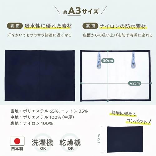 [GUSS]サウナマット 吸水性と防水性の両立タイプ(洗濯・乾燥機OK/日本製) (ネイビー)