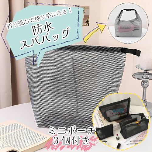 SATOMO サウナ愛好家必携!防水スパバッグ 温泉バッグ ドライバッグ ミニポーチ3個付 (グレー/ブラック)