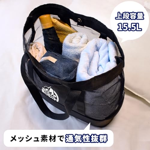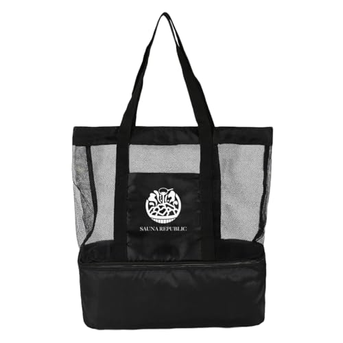 [SAUNA REPUBLIC] 保冷トートバッグ メッシュ 軽量 大容量 2層構造 底部保冷ポケット付 サウナバッグ 銭湯 プール ジム アウトドア 仕切り・防水加工 メンズ レディース おしゃれ 23.2L ブラック (ブラック)