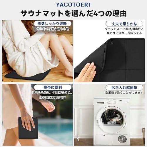 YACOTOERI サウナマット サウナシート 折りたたみ コンパクト ボタン折りたたみ式サウナマット(ブラック)