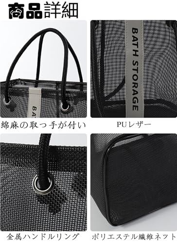 【優れた通気性】メッシュデザインのバッグは、通気性が良く、水切れが速く、速乾性に優れています。水が溜まりにくく、カビや臭いを防ぐため、長期間清潔に使用できます。