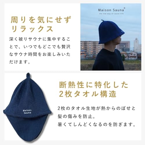 [Maison Sauna] 呼吸が楽になる サウナハット 【サウナ・スパ健康アドバイザー監修】 極厚2重タオル生地 サウナット メンズ レディース 大きめ サウナ サウナグッズ